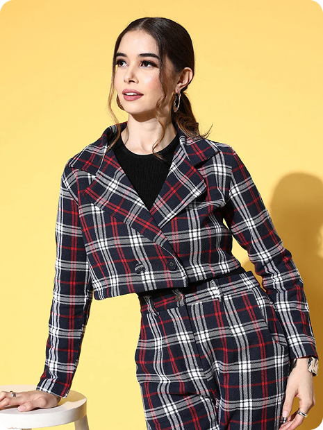 Check Crop Blazer