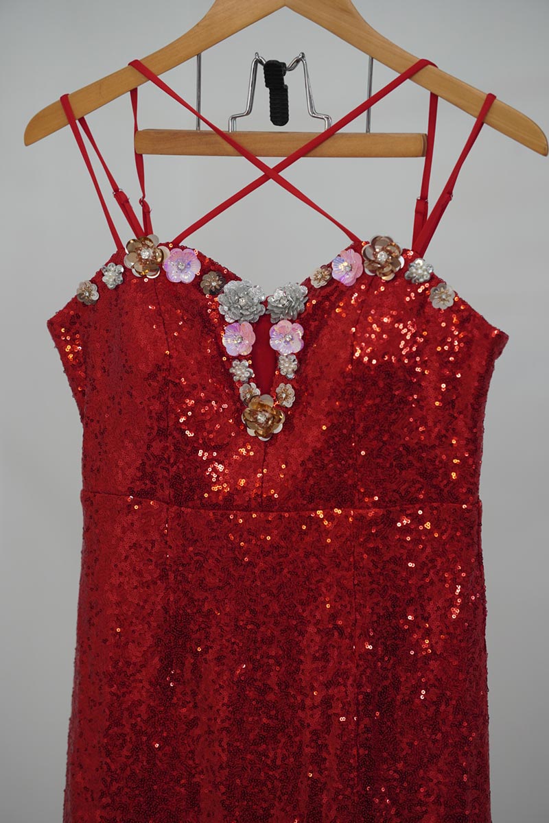 - Wrapped in rich scarlet sparkle, this piece blends romance with refinement.